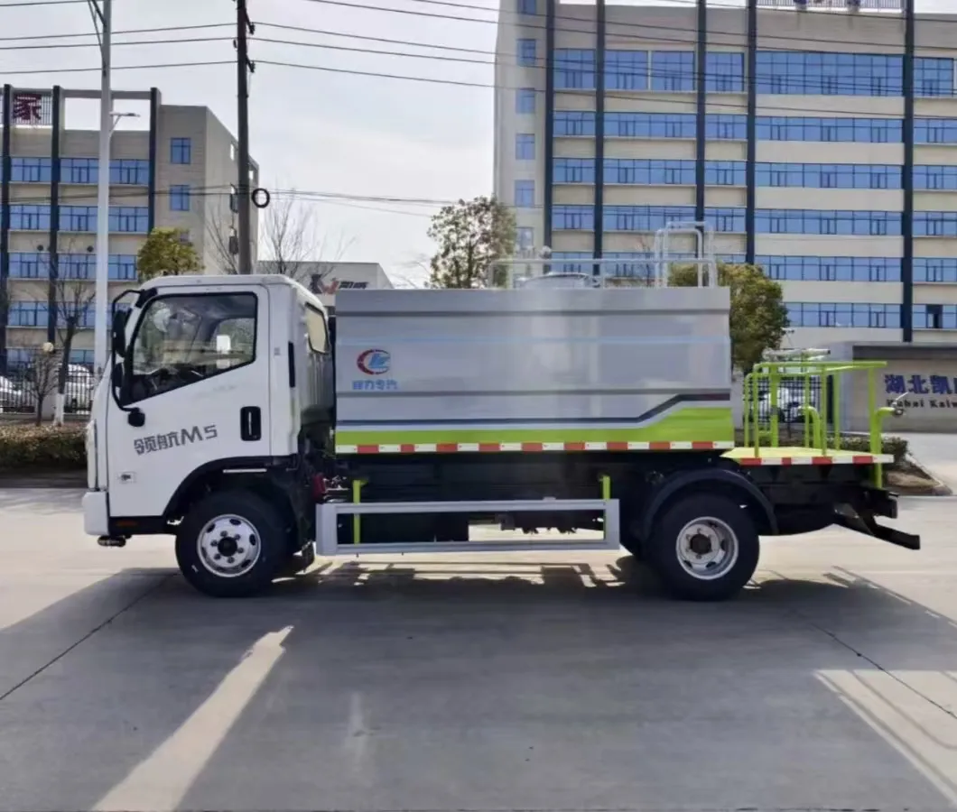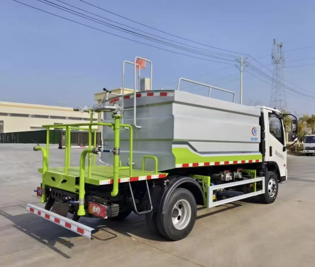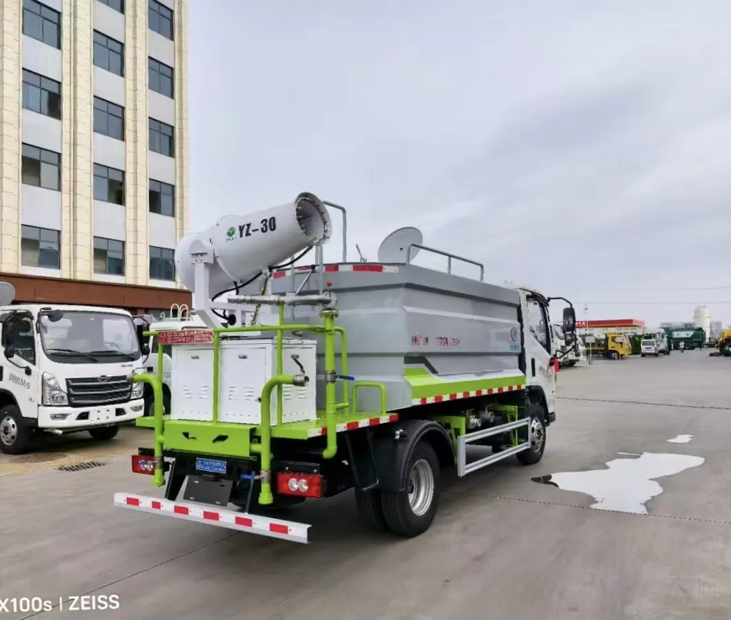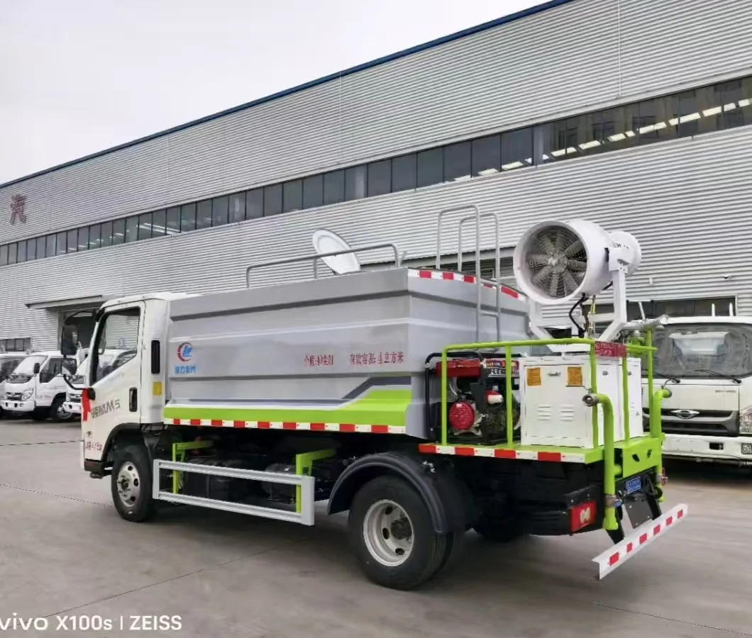 Square tank, multiple styles available, tank volume 7 cubic meters, box body made of high-quality carbon steel fully wrapped and welded, equipped with a wave-proof partition inside, top anti-slip board and protection, facilitating tank top operations and daily maintenance. Use high-quality Yifeng 40/50 sprinkler pump, professionally customized attachment, high gun range up to 38-45 meters, full vehicle stainless steel large-diameter ball valves, standard functions, front spray, rear discharge, side spray, with working platform. High gun 360-degree rotation, adjustable to heavy rain, light rain, mist, columnar, with vehicle tools, 5-meter straight water hose, other standard features. Large rear platform (anti-slip pattern plate). With or without fog cannon is available.